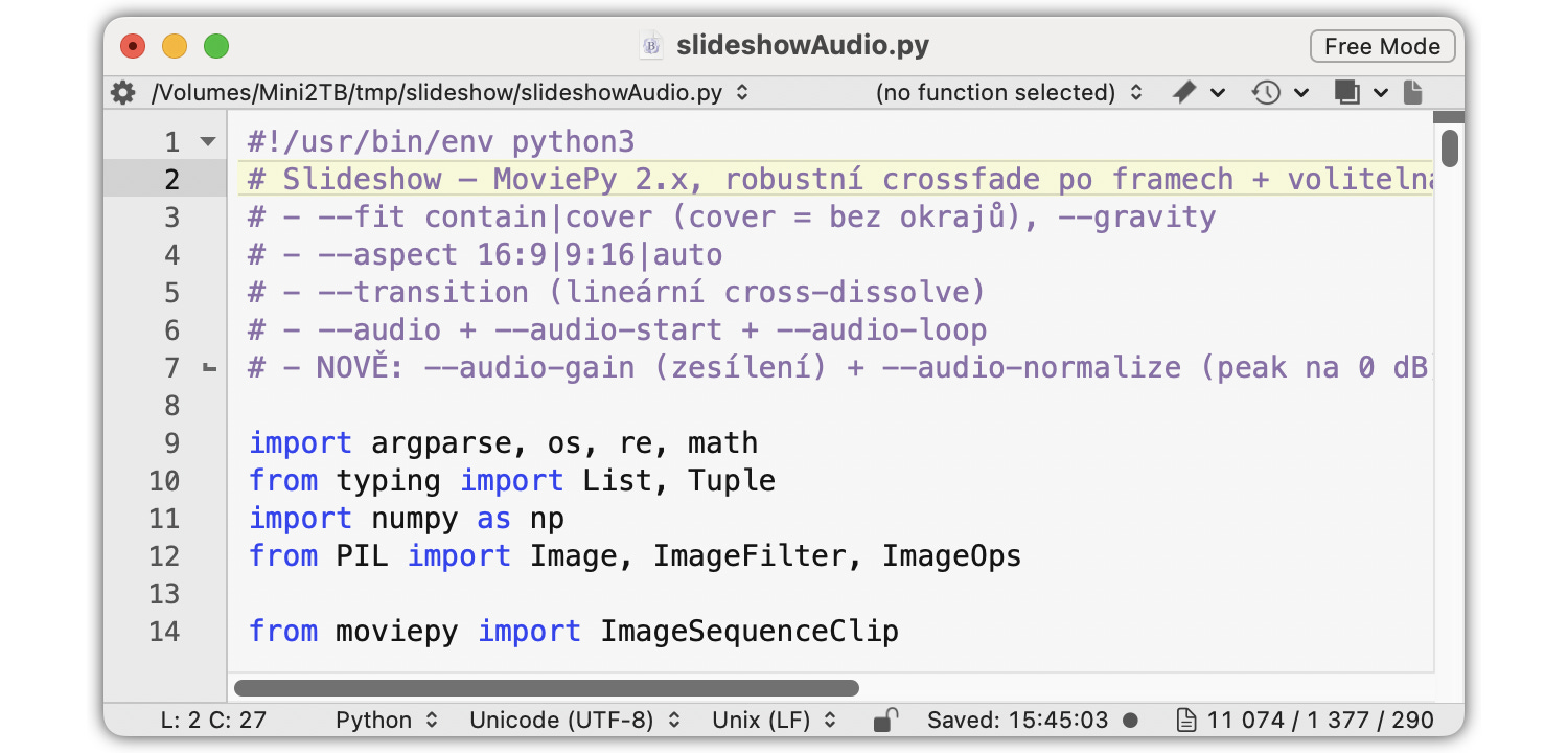 Trochu boj, ale ChatGPT dala dohromady Python co vezme fotky, udělá z nich video (sám zvolí ořezy, přidá přechody, atd) a přidá i audio, které dostane. Hodně se tam plácala mezi verzemi knihoven, ale nakonec to funguje nádherně.
