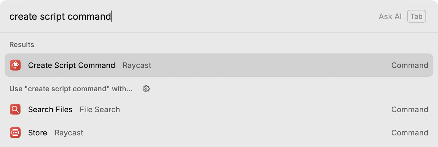 Potřebujete “Create Script Command” kde vytvoříte prázdný soubor v k tomu určeném adresáři. Do toho pak vložíte vytvořený Python. A hodí se “Reload Script Directories”, který načte případně aktualizované popisky/údaje skriptů po aktualizaci. RayCast totiž načítá název a další informace o skriptu z hlavičky skriptu.