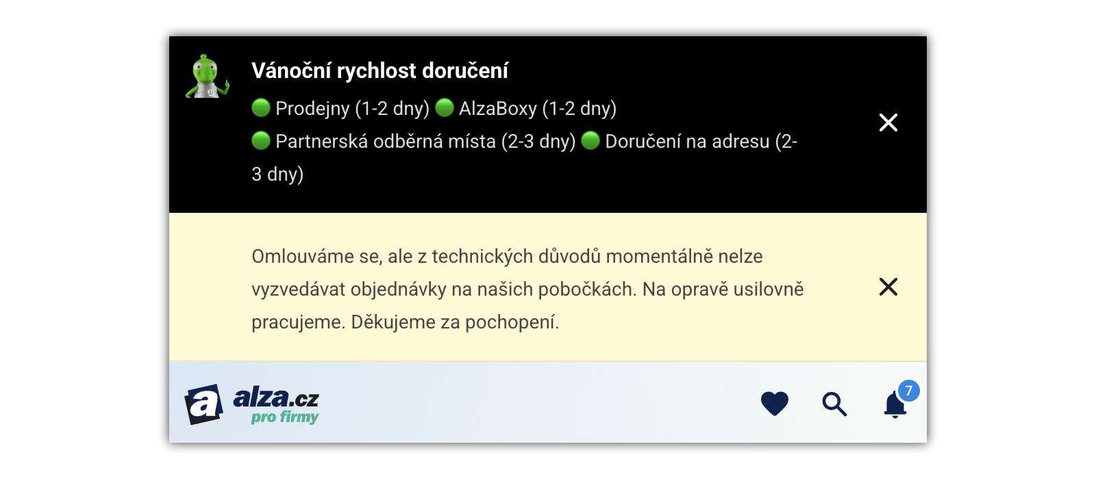 🏪 Přej si něco, padá Alza (neděle 14. prosince ráno).