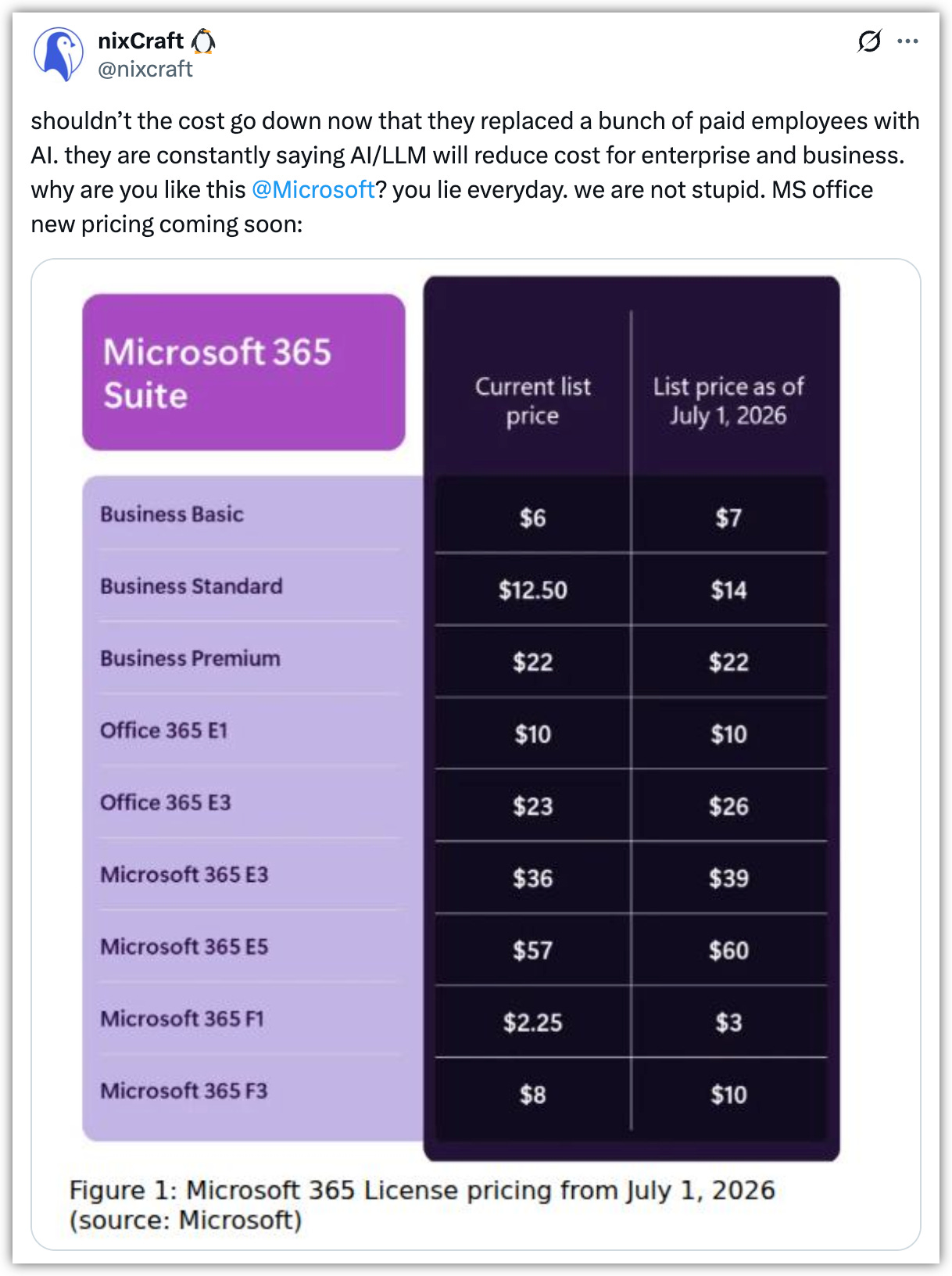 To vlastně je velmi podstatná otázka. Neměl by Microsoft spíš zlevňovat, když AI/LLM snižují náklady a nahrazují drahé zaměstance? :)