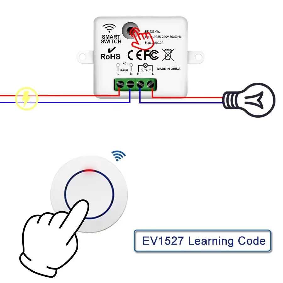 Tohle zjevně není nijak víc chytré, než že tlačítkem ovládáte zapnutí/vypnutí (na 433 MHz). Ale zase je to za nějakých 60 kaček. Tlačítko, spínač, baterie, vše v ceně. A umí se to “párovat”.
