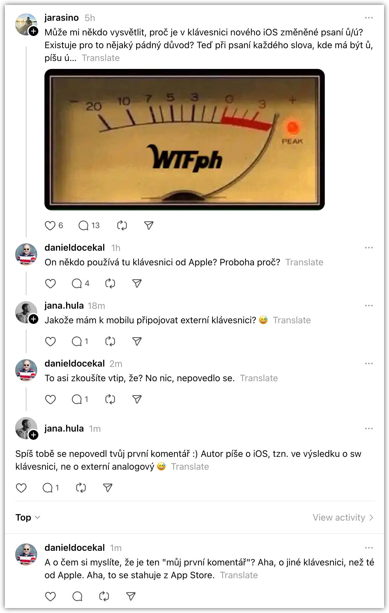 No Václav Maněna psal něco o chytrých lidech. Tak tady mám jednu hezkou ukázku. Jak jinak, než z Threads.