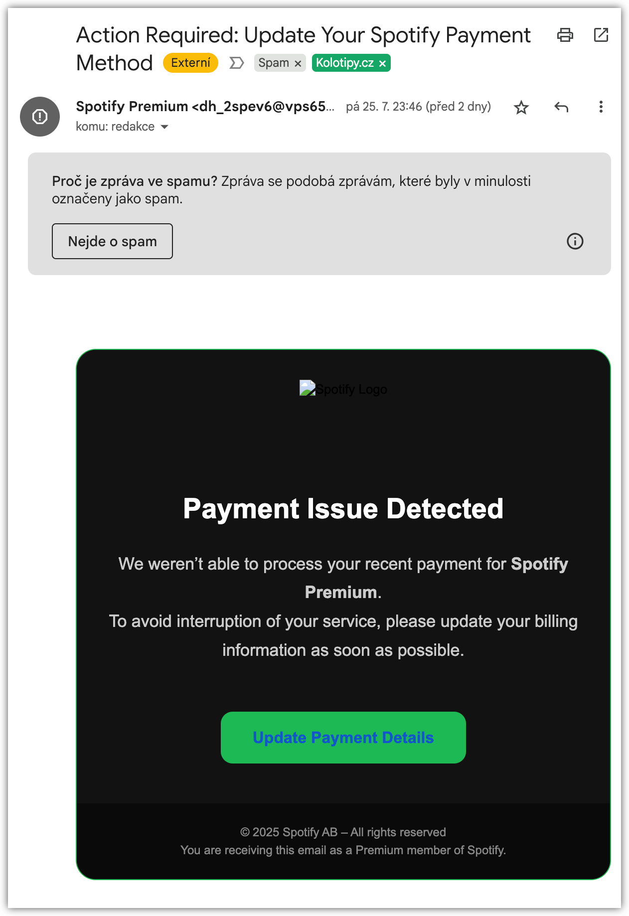 To předchozí vypadalo cíleně, ale tohle je čistokrevný spam. A přišlo toho hodně. Ale samozřejmě i tady je to okrádačka.